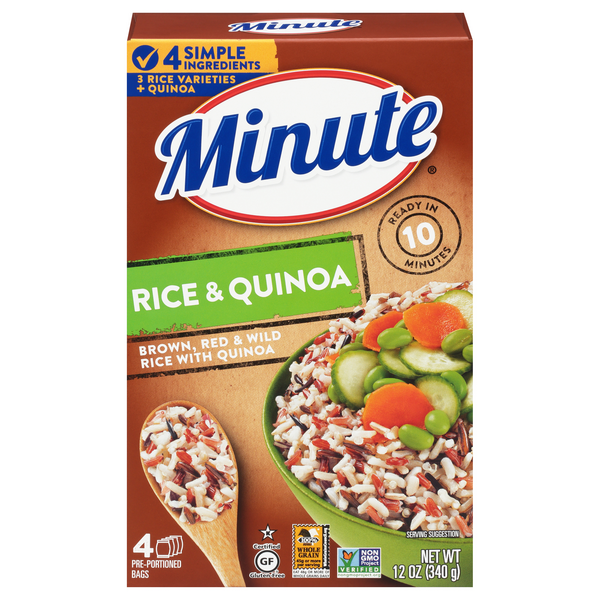 Minute Rice Nutritional Analysis - We can help.® Minute ® Ready to Serve Chicken Rice: 8.8 Oz: 2: Minute ® Ready to Serve Organic Brown Rice: 4.4 Oz: 1: Minute ® Ready to Serve Organic Red Quinoa & Brown Rice with Garlic: 4.4 Oz: cup: Minute ® Ready to Serve Organic White & Red Quinoa: 4.4 Oz: 1: Minute ® Ready to Serve Organic White Rice: 4.4 Oz: cup: Minute ® Ready to Serve White Rice: 8.8 Oz: 2: Minute ® Ready to Serve Yellow Rice: 8.8 Oz: 2: Premium Rice: 14 Oz: About 8