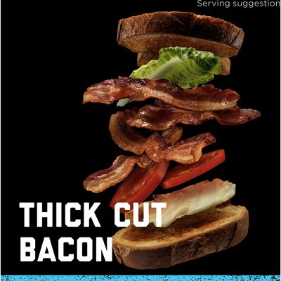 Hormel Black Label Thick Cut Bacon Slices - 16oz : Target Description. This HORMEL BLACK LABEL bacon has the same great taste as the original cut, but it's cut thicker - a LOT thicker - which means it's perfect for turning into bacon bits, chopping up for a salad, or draping over a steak. If you're looking for savory bacon that never falls apart but cuts like a dream, look no further.