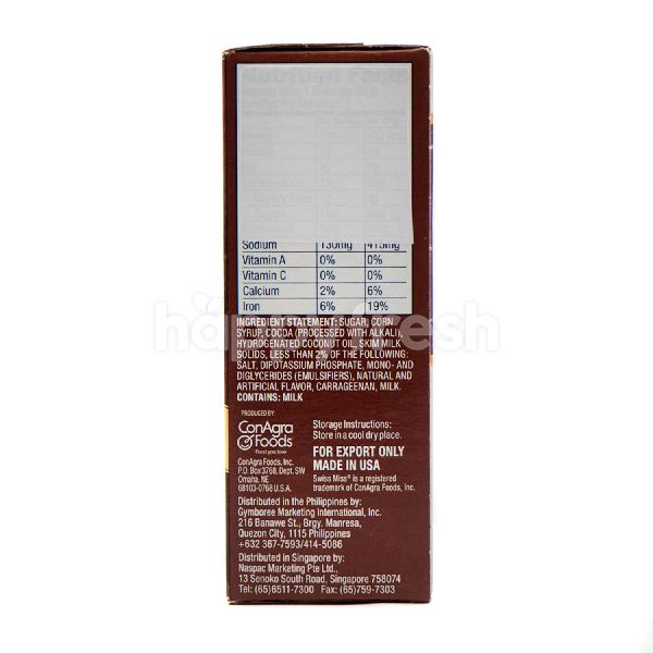Swiss Miss Milk Chocolate Cocoa Mix Allergy and Ingredient Information Indulge your chocolate craving. Made with a signature blend of premium cocoa and fresh milk, Swiss Miss hot cocoa is the smooth, creamy way to indulge your chocolate craving., UPC Code 015700072790 Manufactured by ConAgra Foods Inc. Allergen Inside ... Signup to Read the Label. It looks like Swiss Miss Milk Chocolate Cocoa Mix is Free From a ...