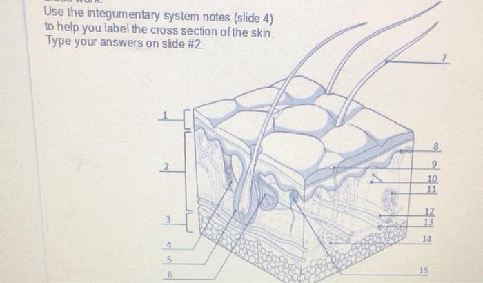 Integumentary system parts: Quizzes and diagrams | Kenhub One of the best ways to start learning about a new system, organ or region is with a labeled diagram showing you all of the main structures found within it. Not only will this introduce you to several new structures together, it will also give you an overview of the relations between them. Enter: our integumentary system quiz and answer worksheets.