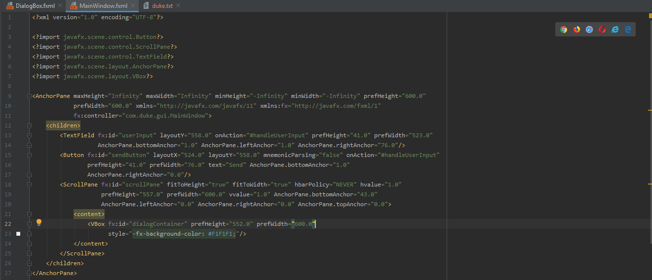 Join LiveJournal Password requirements: 6 to 30 characters long; ASCII characters only (characters found on a standard US keyboard); must contain at least 4 different symbols; JavaFX Controller | Learn How Does FXML Controller Work in ... Explanation: First, we have created an FXML file with HBox, Label, and TextFields and imported them with their packages. Next, we have created a Controller class and load the FXML file.
