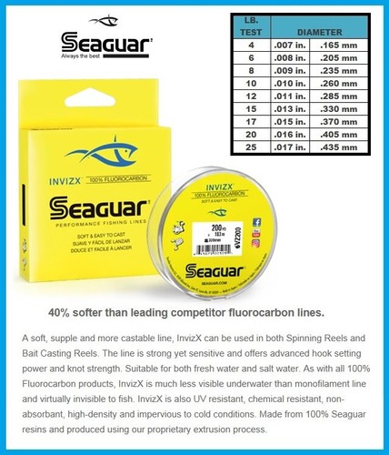 Seaguar invizx vs abrazx. Amazon.com: Seaguar Fluorocarbon Seaguar Inshore Fluorocarbon Fishing Leader – Strong and Highly Abrasion Resistant, Excellent Impact and Knot Strength, Fast Sinking and Virtually Invisible Underwater, 100 Yard Spool. 332. $1922 ($0.06/Foot)$24.99. FREE delivery Sat, Jan 28 on $25 of items shipped by Amazon. Or fastest delivery Fri, Jan 27. Seaguar Seaguar's freshwater lines and leaders and saltwater leaders collections come in a variety of styles, sizes and lengths that are made for every angler. Skip to content Free ground shipping on all orders over $100 Seaguar - Tackle Warehouse In 1966, a Japanese chemical engineer, Mr. Ishii, and a patent department employee and angler, Mr. Yoshida, recognized the attributes of fluorocarbon were perfect for fishing line. Though perfecting the process of extruding flourocarbon proved tricky, the process was perfected, and by 1972, Seaguar Fluorocarbon fishing line was introduced in Japan. Since then, Seaguar has continued to perfect and innovate, and has become a leading name in fishing line. Seaguar Fishing Line - Tackle Warehouse Seaguar Fluoro Premier Fluorocarbon Leader Line 25yd. $10.99 - $21.49 Seaguar TactX Braid & Fluorocarbon Kit. $16.99 - $22.98 Seaguar Tatsu Fluorocarbon Line.