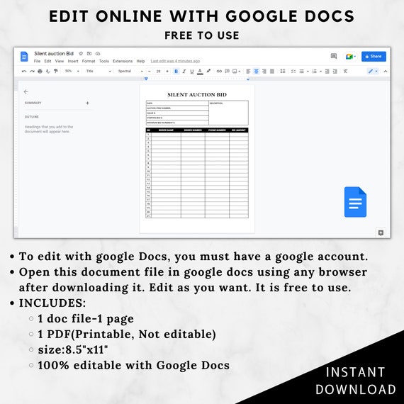 Silent auction template google docs