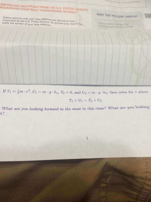 Solved If T1=(1/2m)(v^2), U1=(m)(g)(h1), T2=0, and | Chegg.com
