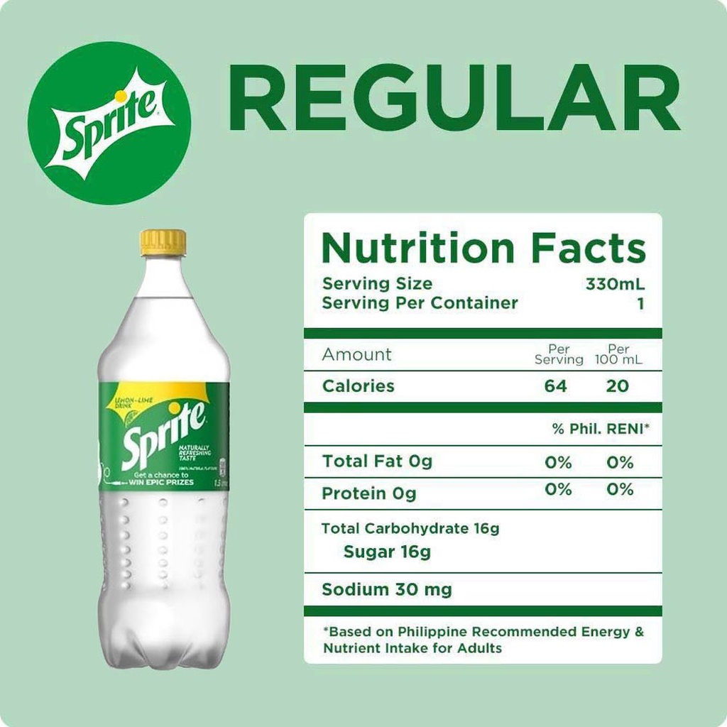 Sprite | Nutrition Facts & Ingredients | Coca-Cola GB Crisp, refreshing and clean-tasting, Sprite is a lemon and lime-flavoured soft drink. It first hit ... Coca-Cola Global Home | Brand Sprite Sprite’s crisp taste with hit of lemon-lime flavour gives you that unmatched cut-through refreshment.¹ It comes in following sizes: Cans: 180 ml, 300 ml, 330 ml RGB: 200 ml, 300 ml, 330 ml PET: 250 ml, 300 ml, 400 ml, 600 ml, 750 ml, 1250 ml, 1500 ml, 1750 ml 2000 ml, 2250 ml Show Nutritional Facts Sprite #ThandRakh – Bus Stop Watch on Buy now