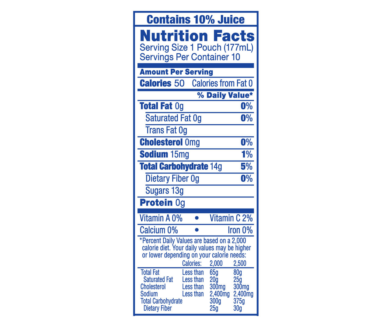 Capri Sun® Fruit Punch Flavored Juice Drink, 10 ct Box, 6 fl ... Capri Sun® Fruit Punch Flavored Juice Drink, 10 ct Box, 6 fl oz Pouches | Capri Sun PRINT Nutrition & Ingredients Serving Size 1 Pouch (177mL) Serving Per Container About 0 Amount Per Serving Calories 35KCAL Calories from Fat 0 % Daily Value* Total Fat 0G 0% Saturated Fat 0G 0% Trans Fat 0G Ingredients: